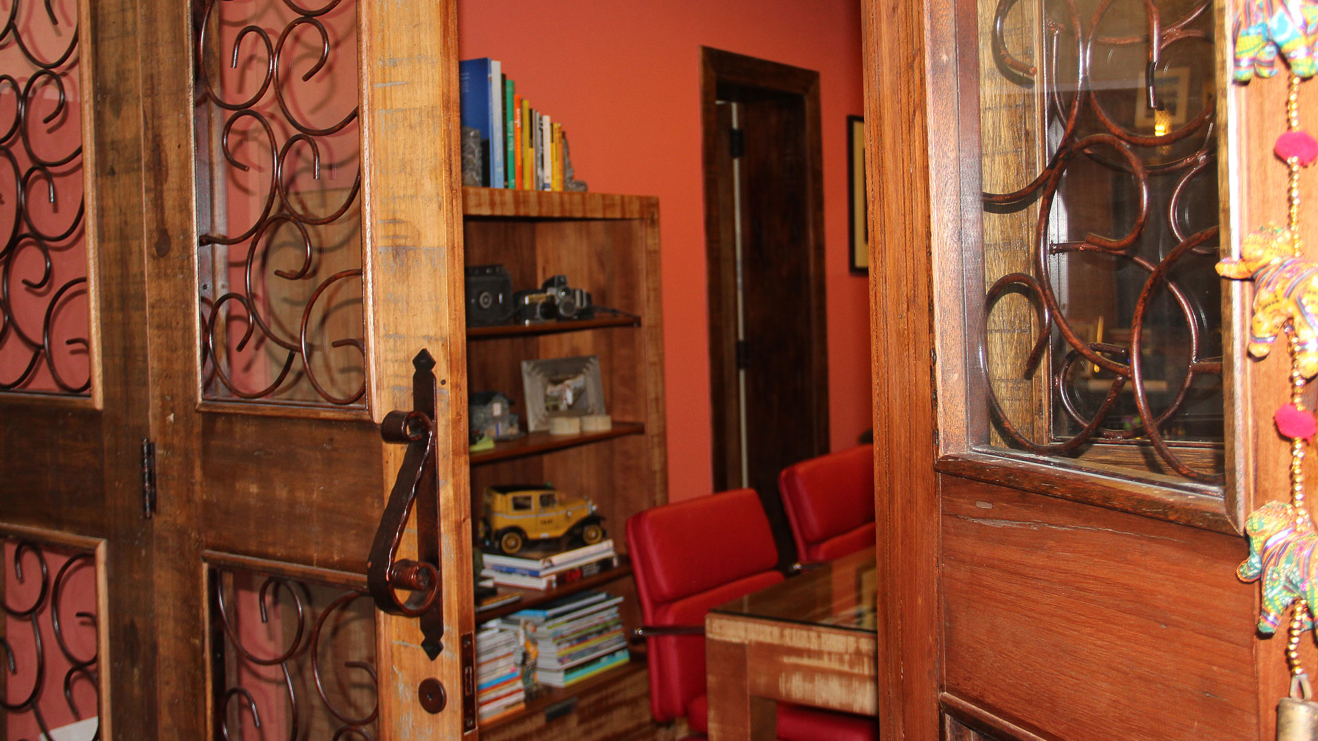 A arquiteta aproveitou a proximidade do ambiente com o exterior da casa e captou uma grande quantidade de luz natural. Foram abertos vãos para receber portas antigas, compostas de ferro, vidro e madeira, que conectam dois espaços existentes nas áreas externas da casa.