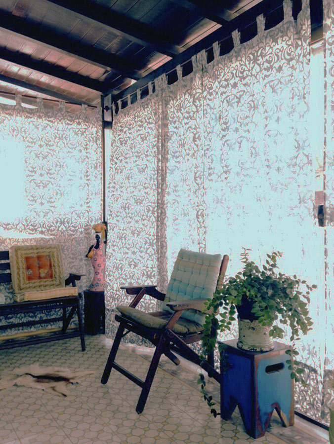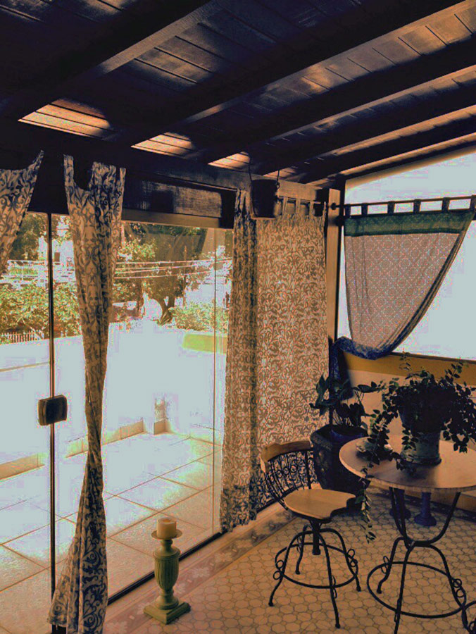 Em todos os vão foram utilizadas esquadrias em blindex e cortinas decorativas de Bali.